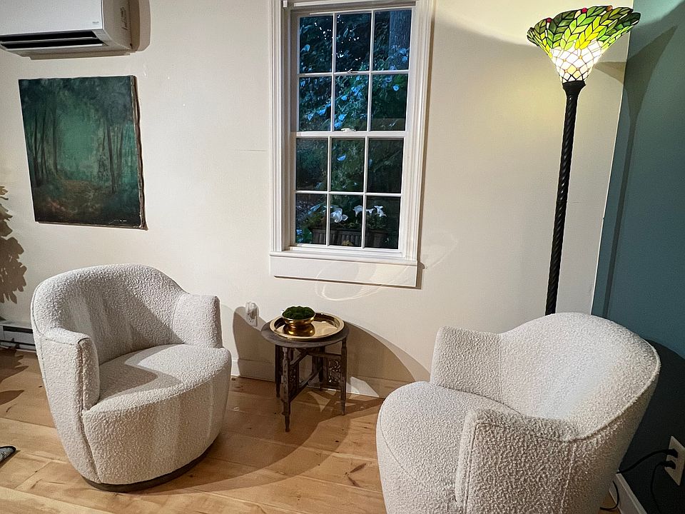COMMERCIAL RENTAL - OFFICE SPACE ONLY! I WILL ONLY RESPOND TO TEXT MESSAGE , INCLUDE YOUR PROFESSION & WEBSITE etc . This is NOT a home. Fully furnished Therapy rooms, for psychotherapist or energy healing, etc tastefully decorated two story studio style space for rent 3 1/2 days/week possibly more. En suite bathroom, 100% privacy, no shared walls. FREE parking! In Portsmouth's prestigious historic district. Renewable lease, starts at 6 months and can be long term. Pay per days you commit too. Choose between: Sun-Wed Includes utilities & cleaning 6 month renewable, up to 3.5 days a week , additional mornings might be available.