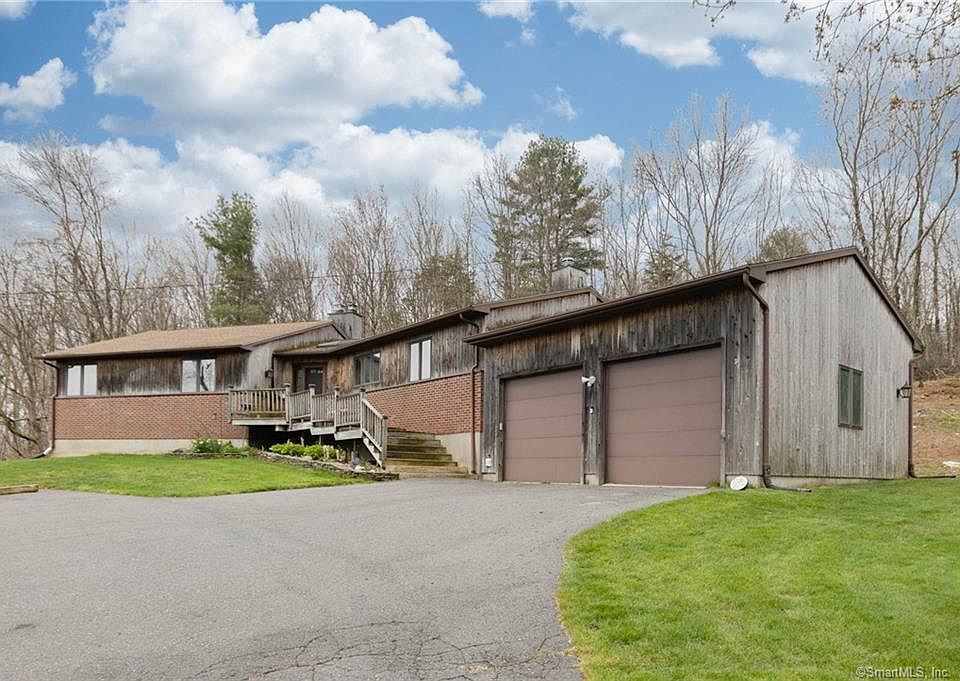 360 degrees of privacy - if you don't count the cows across the street! 3 bedroom, 2 bath ranch in a quiet location on the Harwinton line. Remodeled kitchen featuring white Thomasville cabinetry, granite counters, stainless steel appliances and vinyl plank flooring. The cozy den is off the kitchen and has a wood stove and new Pella slider to the deck. The sunken living room is open to the skylit foyer and formal dining room. The dining room also has a new Pella slider to the deck. The primary bedroom has hardwood flooring, 2 closets and a remodeled full bathroom. Additional full bathroom and 2 bedrooms, each with hardwood flooring, complete the main level. The lower level has approximately 720 square feet of finished space with the potential for an in-law suite. There is a workshop with access to the attached 2 car garage and lots of unfinished space on the lower level for clean, dry storage. Multi-tiered deck in the rear with a wooded view. Farmland views to the front and level grass areas on the sides of the home. New water treatment system in place. The interior of the home was recently painted, textured popcorn ceiling finish was removed and new, blown in fiberglass insulation was added in the attic for energy efficiency.