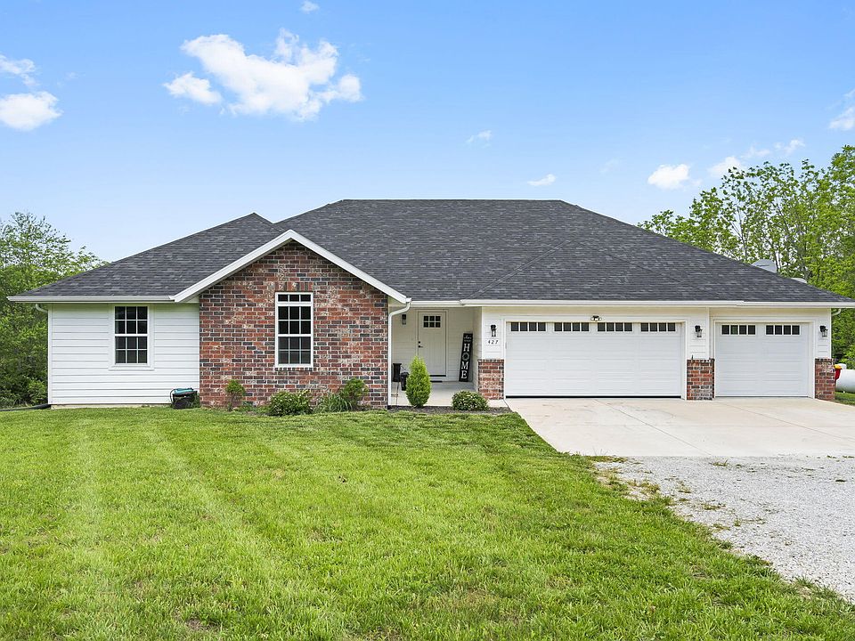 Welcome to this BRAND NEW Linville Construction home on 6.75 acres in Nixa! This lot is treed and is tucked back in an area where you can enjoy privacy from your neighbors on your covered deck! Linville finishes it out with quality products like custom cabinets, quartz countertops in kitchen as well as granite countertops in the bathroom, and stainless appliances with a gas range and separate pantry. A split floorplan with the master bedroom and en suite on one side and the other 3 bedrooms on the other. The master will have a soaker tub and 4 ft tile shower to enjoy along with a large walk in closet! Luxury vinyl plank will be your main flooring with carpet in the bedrooms. Enjoy a 4 car tandem garage on this home for extra storage or a workshop. This house will have a 2 party shared well and a leased propane tank. Also a shared road agreement with 2 other parties. Completion date is mid-August.