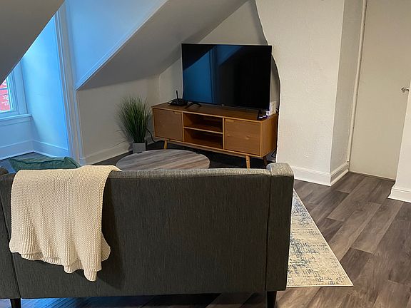 Newly renovated, fully furnished, third floor studio apartment just 2 blocks from Lancaster General Hospital. Many shops and restaurants located within walking distance. One reserved, off street parking space comes with the apartment. All utilities are included. Pay to use washer and dryer are located on site. Must rent for one month minimum. Fully furnished apartment. Owner pays all utilities. One reserved off-site parking space included.
