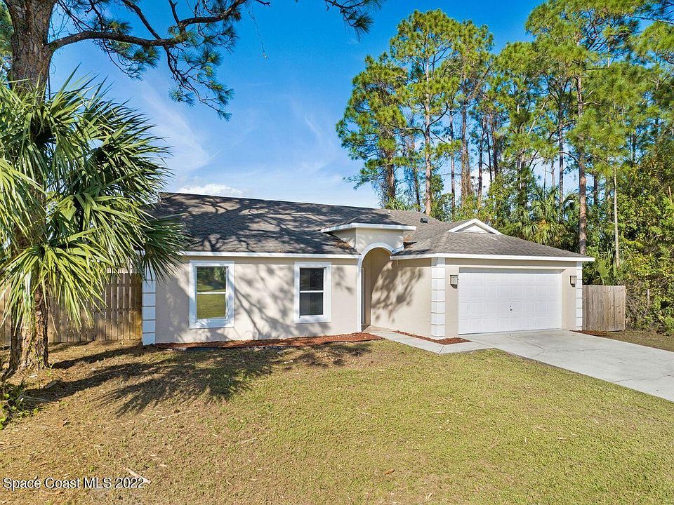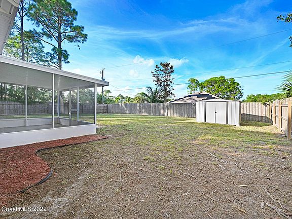 You may be looking to relocate in or to Florida, or you may be looking for an investment property for extra income. If so, then surely you would want to consider this 4-bedroom 2 bath CBS home located in the rapidly growing City of Palm Bay. The property is just over 10,000 sqft (2/3 acre) with a completely fenced in back yard, great for kids and pets and plenty of room for a pool. The kitchen has been upgraded with new cabinets, new electric range, new refrigerator, new microwave, newer dishwasher and new granite counter tops. Both bathrooms have also been upgraded with new cabinets and granite tops. The master bath has been beautifully re modeled with an awesome fully tiled walk-in shower, double vanity and a large bathtub. All floors are low maintenance porcelain tile and wood laminate. laminate.