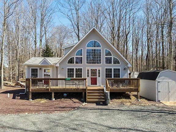 MOTIVATED SELLERS! BRING OFFER! Pocono Mountain Retreat 1 block from the lake! Completely turn-key, this bright & beautiful 4 bedroom, 2 bath Arrowhead Lakes gem comes fully furnished & ready for you to host your family gatherings! The open & spacious interior offers plenty of room to spread out. In addition to the living room, kitchen & dining area, there is a year-round sun room, plus 2nd floor loft. 2 Bedrooms & full bath on both the first & 2nd floors. Enjoy the outdoors on 2 decks, with brand new hot tub, firepit & outdoor seating. This chalet home is handicap accessible with newly installed chairlift. All required permits for improvements are completed & on file at Coolbaugh Twp. Recently permitted for short-term rentals. Arrowhead Lakes is home to 2 fishing & non-motorized boating lakes, 4 beaches, 3 swimming pools, & a clubhouse with fitness center, library, & billiards room. Make this your Pocono Mountains year-round getaway.