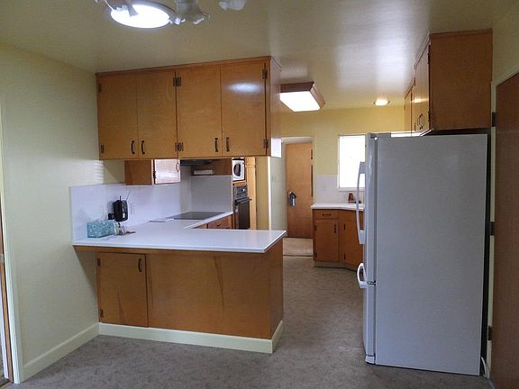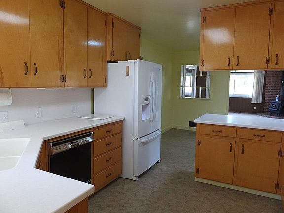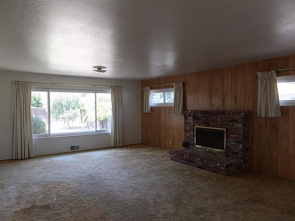 NEW Exterior and Interior Paint! Great space inside this lovingly maintained home. Living room features a brick wood burning fireplace, the family room has a toasty wood stove. Kitchen includes a breakfast bar, nook, with lots of cabinetry. Home boasts hardwood flooring (under the carpet!) in most of the house, newer windows, roomy bedrooms & cedar lined closets plus tile in the baths. A large back yard with storage shed, fruit trees, patios & garden space. Driveway is extra wide for your parking needs.