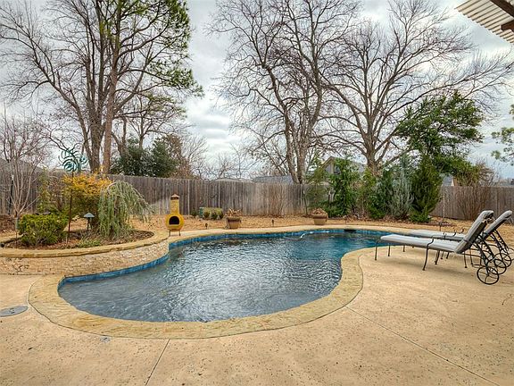 You will talk about this listing and home for days to come with all of the unique updates, upgrades, custom salt water pool and all rooms in between! Your arrival is blessed with superior landscapes, mature trees, and an established community in West Norman! Home interior and entry area are something for the magazines! Drop zone or mud bench at front entry. Living area is spacious and beautiful! Vaulted ceiling, fireplace, built-ins, backyard view, engineered wood floors and soothing colors provide a serene environment to relax or entertain! Kitchen to dining areas accented with knotty alder decorative beams, traditional lighting and picturesque backyard views! Kitchen includes an abundance of counter to cabinetry spaces, built-in stainless appliances, electric cooking, pantry, breakfast bar and dining to entertain the masses or provide an intimate meal. Powder bath just off the dining area as well! Front room doubles as an office, study den, reading room or a 5th bed option! Escape to a primary bedroom for days! Two closets to handle all your wardrobe needs, sitting area by the sliding patio door, and a few layout options for any queen or king bedroom setups. En suite includes 2 vanities, shower and linen storage! Secondary bedrooms are also spacious, with bifold closets and a great touch to living right! One of the guest beds includes a murphy bed and ceiling fan! Travel thru the laundry to access your 2 car garage with storm shelter! A show stopper is the well done backyard retreat! Custom salt water pool with heater and breath taking landscapes, mature trees, gas firepit, pergola and much more! Roofing updated to impact resistant shingles, newer flooring in areas, fresh colors through-out, and a tranquil feeling all around! Time to start living your best life! Take the 3D & video tours to make sure this home is a perfect fit. Then call to schedule your private viewing!