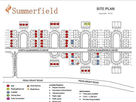 The 1,600 sq ft Bluebird plan is constructed by Millfield, Lancaster County's premium quality home builder for over 25 years. The bluebird offers 3 bedrooms one of which is an "Owner's Suite", 2.5 bathrooms, laundry room, maple cabinets in kit with pantry & opt island, 2 car garage w/storage and basement room for storage or extra space to finish. A large 10x21 deck is optional allowing for great for exterior entertaining! SUMMERFIELD is a new and unique traditional neighborhood in scenic Willow Street. Quaint country setting next door to Pequea Elementary School. 4 minutes to shopping, dining, entertainment and 8 minutes to downtown Lancaster. The Association includes snow removal for public walks and streets and all mowing! Summerfield - Life is Good