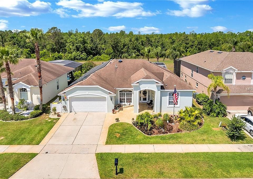 YOUR NEW HOME AWAITS! Stunning 4 bedroom, 3 bath home with a screened-in pool, 2 car garage, and so much more! Solar power and water systems are eco-friendly and even friendlier on the wallet keeping monthly bills low! Upon entering the home you will find a welcoming foyer ushering you past the formal dining room in to a lovely family room. The chef of the house will be over-joyed with the spacious and open kitchen showcasing beautiful, wood cabinets, and stainless steel appliances. The kitchen includes a breakfast bar, built in desk, and a bright dinette area overlooking the back yard and pool area. The pool area includes a spa and huge patio area creating a backyard oasis perfect for enjoying the gorgeous Florida weather, or entertaining a crowd. This home boasts an exquisite Master Suite that is sure to impress including a den/home office attached plus his and hers closets. The spa-like ensuite offers style and function with plenty of room for storage, double vanities, and large shower. Additional bedrooms are generously sized and ideal for family, guests, craft room, or nearly anything else you can dream up. Plenty of local shopping and dining nearby along with parks and lakes offering options for outdoor recreational activities. Close proximity to major highways for access to all of the incredible attractions and entertainment Central Florida has to offer. You do not want to miss out on this opportunity!