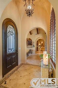 Stunning home w views of golf course & gated courtyard. High ceilings, arched openings, wet bar in DR. Gourmet kitchen w high end SS appliances; gas cook top, 2 ovens, lg bkfst bar & island. Kitchen is open to FR & overlooks outdoor living. Lg 2nd bdrms w private baths; 1 is guest suite w private courtyard entry. Lg study has fireplace & overlooks courtyard. Master suite is separate w exquisite master bath! Covered stone patio w fireplace. 3 car garg, wrought iron fence, culdesac.