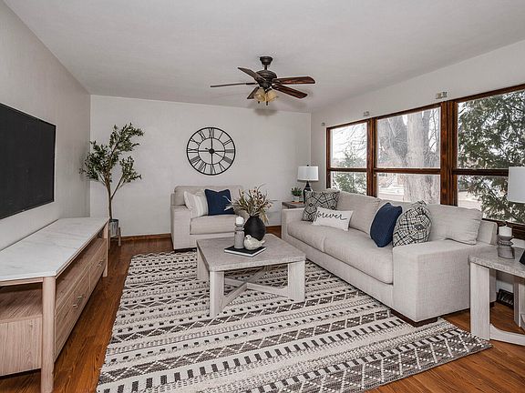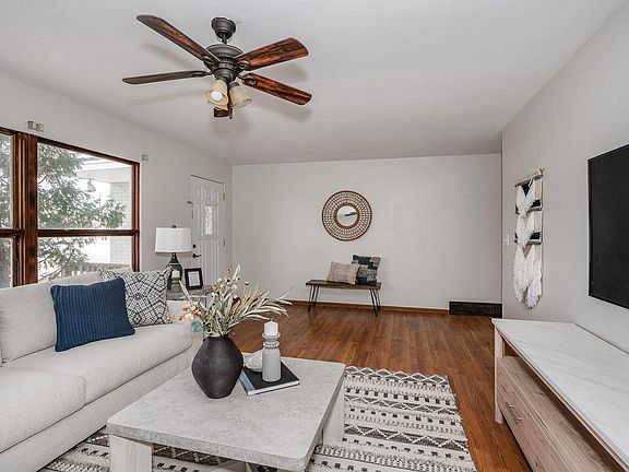 This 5-bedroom 2-bathroom ranch style home has modern updates and much to be desired. As you walk into the home through the main door, you will see a nice sized family room off the kitchen. The kitchen boasts a new quartz countertop with beautiful backsplash a brand-new fridge and updated laminate flooring. The main floor bathroom has a new countertop, sink and hardware, and the bathtub has a nice tile finish on the walls. You will notice the new carpet installed throughout the home. The primary bedroom is on the main floor with two other bedrooms. As you walk downstairs you will come to a nice bonus family room. The basement bathroom has updates, and you will be amazed by the ample storage space. The mechanical room is large and added storage can be designed in this room as well. Backyard access is through a new sliding glass door in the kitchen to a beautifully crafted patio that will be a popular spot for guests in the summertime. The backyard is fenced with gate access to Tatley-Eagles Park directly adjacent to the East of the property so there are no backyard neighbors. Has potential to be a value-added property with some additional updates or could make a great investment property for your portfolio. Call your favorite Realtor and schedule a showing today.