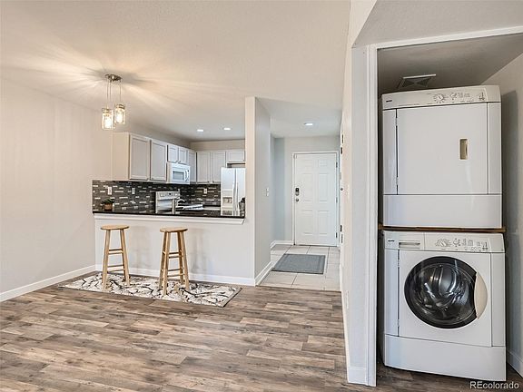 The prime location backs to the open space, just minutes to DIA, Aurora Town Center, Shops, and Restaurants. Centretech, Aurora Community College of Aurora, Fitzsimmons, Buckley Air Force, Fully remodeled, new high-efficiency, light rail American Standard furnace with a 10-year warranty, new carpet, 1st floor no stairs, new laminate floors, new backsplash, new paint, new baseboards, new kitchen cabinets, repainted new granite and sink new microwave, new stove, new carpet, all new LED lights, new disposal, washer, and dryer included, back to the open space, Low HOA, Open kitchen, the building will be getting new paint this Summer.