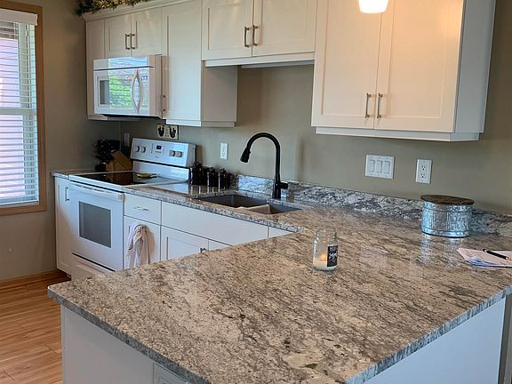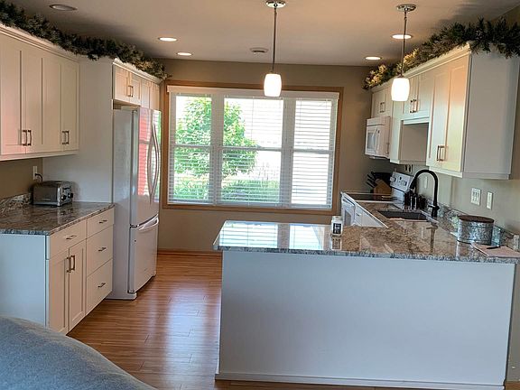 Ranch home with open floor plan, 3 bedrooms, 2 bath and a large 2 stall attached garage. Everything is on one floor. In floor heat throughout home & garage. Enjoy the beautiful landscaping, the 16x19 stamped concrete patio and a large lot. Appliances & storage shed included.