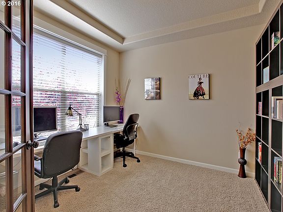 Craftsman style 2010 built home with desirable great room plan. Formal dining room with tray ceiling. Gourmet kitchen, with eat-at island, stainless steel appliances, nook and pantry. Adjacent great room with high ceiling and gas fireplace. Covered back patio and fully landscaped yard. Solar panels and central air. Just up from Meadow Park Middle School and Nike World Headquarters.