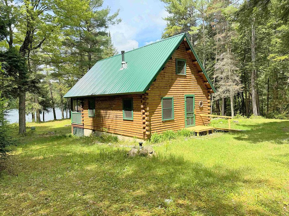 Private Log cabin with 109 feet of water frontage on Halls Lake. Enjoy the beautiful views of the lake from your dock, as well as swimming, fishing, & kayaking. This property features a first floor bedroom, 3/4 bath, loft area with a bedroom and sitting room. Spiral stairs, screened porch, storage shed, gazebo, Jotul wood stove in the living room. Lots of natural light in the kitchen/dining room. Drilled well and a 3 bedroom septic design. Zoned for seasonal use. Watch the hummingbirds from your screened porch. Enjoy the call of the loons!