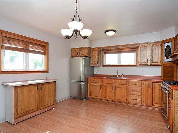 Solid brick home on generous, fenced corner lot. Large eat-in-kitchen that can accommodate a large gathering. Oodles of cupboard space in the kitchen, including a lazy Susan and an appliance garage.The stainless steel gas range has a convection oven and a warming drawer. Large bedroom closets and loads of additional storage space in the basement. There are hardwood floors under the carpet. Finished room in the lower level has a door to the lower porch and a cozy wood burner.