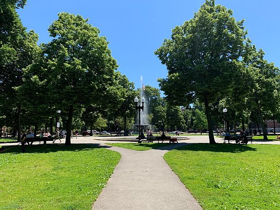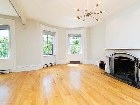 This gorgeous, pet-friendly, sun-drenched 2 bedroom overlooking Blackstone Park offers a private deck, parking, and the perfect working from home nook. The spacious open living area features fashionable sputnik chandeliers, high ceilings, bowed windows, a wood-burning fireplace, and defined spaces for lounging, and dining. Slate countertops, Wolf & SubZero appliances, and ample cabinetry can be found in the kitchen. A sizable bedroom can accommodate a king-sized bed and leads to a lovely private deck, while a smaller bedroom offers a decorative fireplace and functional built-ins. Both bedrooms offer double closets while a fully built-out pantry and additional double closet provide additional storage. The spa-inspired bathroom features a jacuzzi tub, rainfall showerhead, and a brand new vanity. Direct access, gated parking is included in the rent. Lease terms are negotiable and pets are welcome! Tenants pay for heat and hot water. A window a/c and a floor unit a/c are provided by the landlord. First month's rent, one-month security deposit, and one-month broker fee are required.