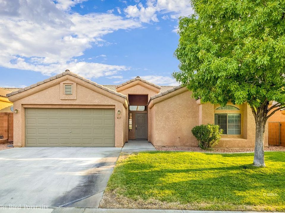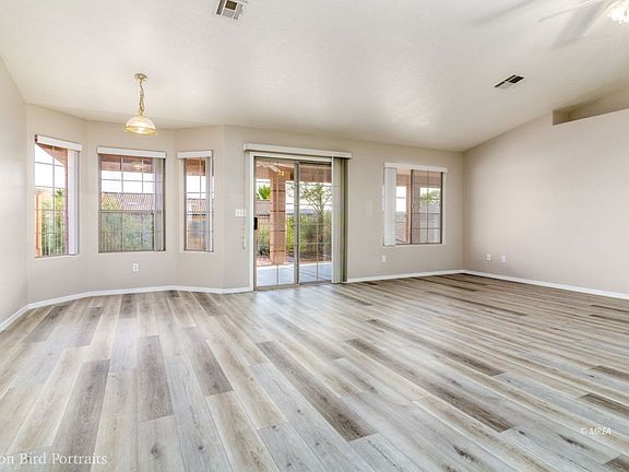 REMODELED.....AND WITH VIEWS !!!! Located in the GATED COMMUNITY of Copper Bluffs. Contemporary look with sharp new upgrades. NEW LAMINATE FLOORING starting in the entryway throughout the living room, dining room, kitchen, hallways and bathrooms. No expense spared here on flooring. Bedrooms ...all three have NEW CARPETING. You'll love this kitchen, ALL NEW STAINLESS STEEL APPLIANCES and NEW GRANITE countertops. Why stop yet....Yes...the entire home has NEW PAINTING throughout the interior. Two dining areas in this floor plan offer multiple uses for the second dining area ( possible pool table ). Vaulted ceilings in the living room, dining areas and kitchen bring that extra feeling of openess. Master bedroom has french door entryway with a walk-in closet. Two guest bedrooms are located right next to the guest bathroom. LARGE SPACIOUS COVERED PATIO with "VIEWS". Backyard has a northern orientation making this backyard perfect for year round outdoor entertaining....located on an elevated lot there are no homes obstructing your view of the mesas and mountains. Residents can use the pool, tennis courts and workout facllity at the Mesquite Vistas Sports Compl