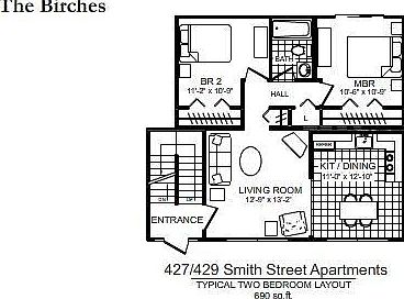 - Total interior livable area: 690 sqft