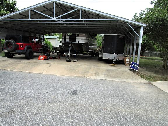 This home is located on 4.7 acres, 5 bedroom/3 1/2 baths; large kitchen with island, electric outlets in kitchen are in abundance, nice size pantry and adjoining dining area; home has a formal dining room; Den area has corner fireplace with gas logs; Recess lighting in the den and kitchen area; Down stairs has 3 bedrooms and 2 1/2 baths; Upstairs has 2 bedrooms, large gathering room with a full bathroom; This home has plenty of inside storage; Home has wood flooring and carpet thru out; Outside area has a two car carport attached to house with concert flooring with a room above for storage, along with a three detached carport with concert flooring; On backside of property there is a 3 car carport used for storage; Large chain link fenced in back yard; Above ground 30x30 pool with deck built around it; Home has a large back patio covered; Fire pit right off the patio; Comes with a tool shed; Home has a whole house generator connected
