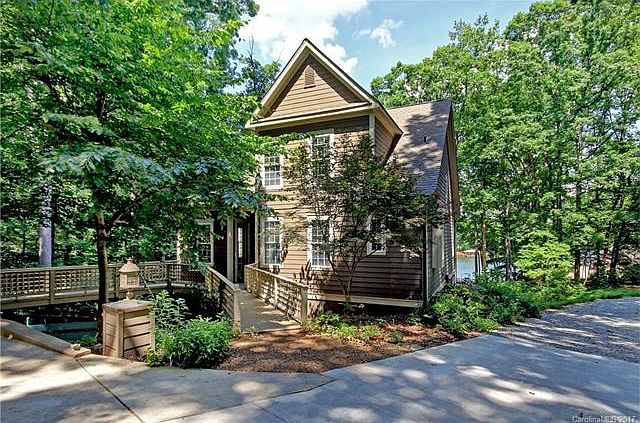 Real SHOW STOPPER! Adorable English cottage on Lake Norman located on main side-channel w/year-round view. Small, picturesque lagoon w/approx depth of 36", on lower side of waterfront, perfect for play & fishing. Beautiful low-maintenance gardens in natural setting. House boasts gorgeous heart-of-pine flooring, 2 screen porches & covered deck (1 on each level), 5 fireplaces & chef's kitchen. Half of lower level has HVAC & wiring but not finished. Large garage w/ fabulous workshop above. DREAMY!