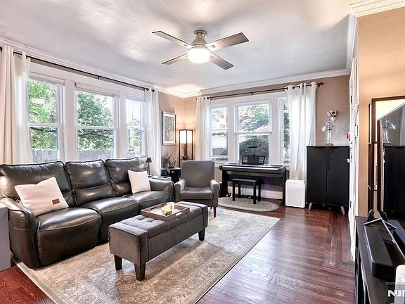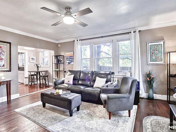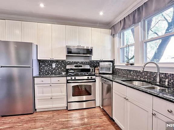 This sunny corner 2BR apartment has Southern and Western exposures overlooking park-like grounds. The first floor has a nice living room and dining area that leads to THE UPDATED KITCHEN with granite countertops, s/s appliances and is perfect for entertaining. A very large closet for storage, along with a MBR with a built-in closet and another BR currently used as a guest BR and office. The first floor rounds up with an UPDATED BATHROOM, and crown molding throughout the home adds an elegant touch. Detached one car garage plus one outdoor parking space. Convenient location with easy NYC transportation. Low HOA fee includes heat and water. FEATURED HIGHLIGHT: A PRIVATE BONUS SPACE IN THE BASEMENT DIRECTLY CONNECTED TO THE APARTMENT, PROVIDING A TOTAL OF 540 SQ. FT. PERFECT FOR A FAMILY ROOM, HOME OFFICE, OR ENTERTAINING, ALONG WITH A UTILITY ROOM FEATURING NEWER SAMSUNG WASHER AND DRYER, WATER HEATER, AND AMPLE STORAGE.