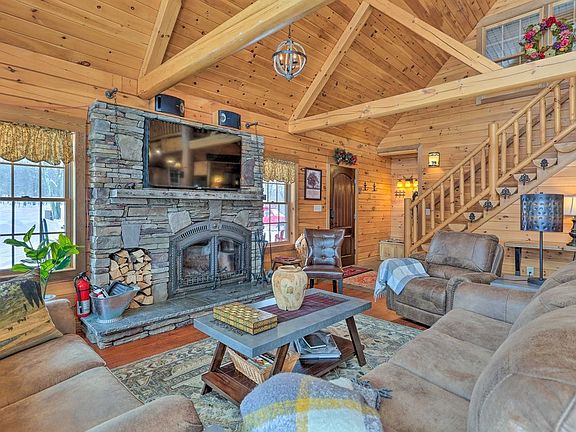 1,400-Sq-Ft Wraparound Deck w/ Mountain Views | Gas Grill | 300 Feet of Roaring Brook River Frontage with Sewer, Water, LPG, Electric, and Internet included. All within 15 min to Scranton's transit, dining, and shopping amenities in the metro area. 427 Summit Woods is GPS address for location of 1 Green Mountain Place. This lavish 5-bed, 3-bath Roaring Brook Township rental was designed with entertainment in mind! Featuring a spacious deck, game room, and 242 acres with 8 miles of trails and a freshwater swimming pond, this cabin is a destination in itself. Hit the slopes at Montage Mountain or explore Nay Aug Park before returning home to unwind by the wood-burning fireplace. The Property SLEEPING ARRANGEMENTS - Bedroom 1: 1 king bed - Bedroom 2: 1 queen bed - Bedroom 3: 1 twin bunk bed, 1 bunk bed (twin/full) - Bedroom 4: 1 bunk bed (twin/full) - Bedroom 5: 1 twin daybed w/ 1 twin trundle - Additional Sleeping: 1 portable crib OUTDOOR LIVING - Naturally filtered private pool/swimming pond - Wraparound deck, private balcony, gas grill, mountain views - Fire pit (firewood provided) - 242 acres w/ 8 miles of trails KITCHEN - Fully equipped, stove, oven, dishwasher, refrigerator - Keurig coffee maker, Crockpot, blender, tea kettle, toaster - Cooking basics - Dining table & breakfast bar INDOOR LIVING - 3 Smart TVs, speakers, telescope, books - Wood-burning fireplace w/ masonry stone front chimney - Board games, video games, foosball table, air hockey table, dartboard, cornhole boards GENERAL - Free WiFi - Washer & dryer - Linens, towels, complimentary toiletries - Central heating, ceiling fans - Wind turbine & solar panels