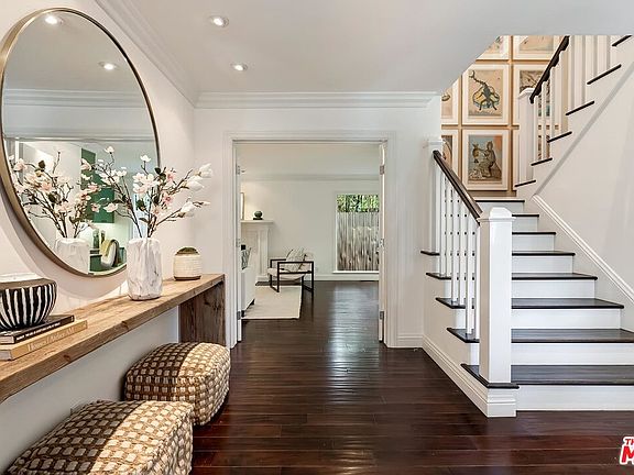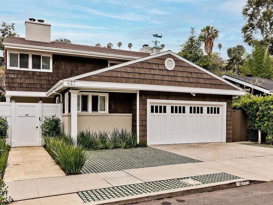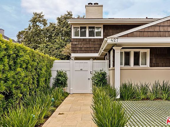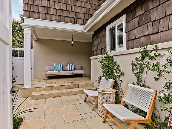 Nestled in the heart of Santa Monica Canyon, this gracious shingle-clad Hampton's style Traditional home is sure to capture both your heart and imagination. With a smart floor plan that mixes open and intimate spaces, this 3 bedroom 3 bath home offers a perfect way to balance living, working and relaxing in today's lifestyle. The large living room with fireplace, gorgeous built-in shelves and large picture windows also features a functional built-in office area with custom wood cabinetry. The eat-in chef's kitchen is the dreamiest - boasting a large picture window which frames a lovely view of the grassy yard, Calcutta marble counters, a Viking stove, Sub Zero refrigerator, bespoke cabinetry and a breakfast bar. The kitchen opens to a comfortable den with wood burning fireplace and custom built ins. Just outside lies a covered stone patio for a shaded retreat to dine or entertain. A 3/4 bath and large laundry room complete the lower level. Escape upstairs to the gracious master suite complete with lounging deck and sumptuous Carrara marble bath with farm sink, separate shower and romantic claw foot tub. 2 Additional bedrooms share a patio and bathroom with gorgeous finishes and verdant views. Large direct-entry garage and 3 additional off street parking spaces. Located in the highly coveted Canyon Elementary Charter School district. Equidistant to the beach and Rustic Canyon Park, this perfectly located canyon charmer makes California dreaming a reality.