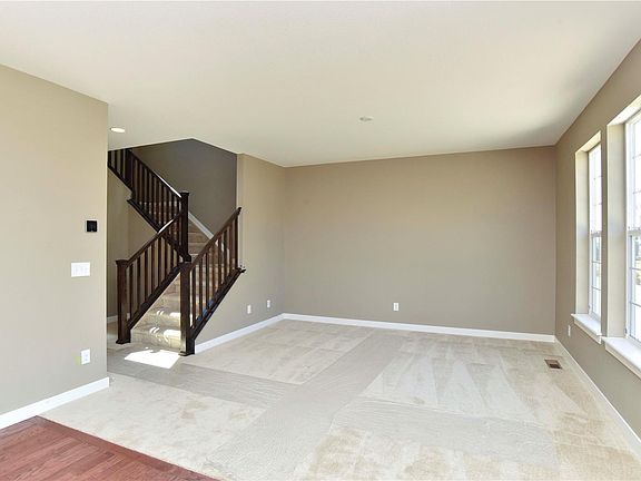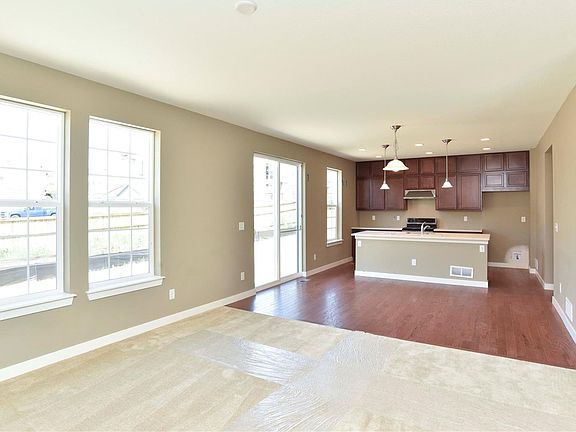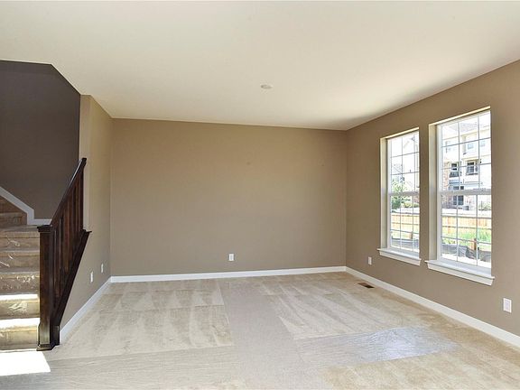 This popular two-story home is a show stopper with 9ft. first-floor ceilings, beautiful flooring throughout the main level, set off by a complementary designer Sherwin Williams paint package. A gourmet's delight, the kitchen with full cherry like cabinets to ceiling, including a gas range. An oversized island opens to spacious Great Room- perfect for entertaining and showcased with lots of bright open windows to the blank canvas of a backyard. Upstairs, you'll discover two secondary bedrooms, a dedicated laundry space, and a spacious master suite. The master suite features a large walk-in closet, and the luxurious bath includes a dual sink vanity with easy to care countertops and a walk-in shower. Additional features include 2 car garage with extension, air conditioning, a Mission-style stair rail, recessed can lighting galore, and a partial unfinished basement with rough-in plumbing. Front yard landscape instillation included!