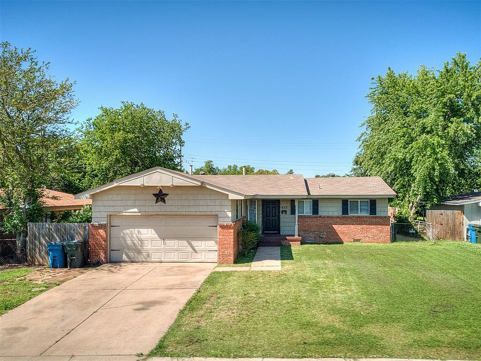 Charming home located on an oversized lot in Midwest City! This home features 3 bedrooms, an oversized garage with an above ground storm shelter, a large fenced backyard with a storage shed and a covered patio that is perfect for entertaining, fresh paint throughout home, and newer flooring. The kitchen showcases newer appliances to include a brand new gas stove and oven. Located minutes away from Tinker AFB, Rose State College, I-40, restaurants, and more!