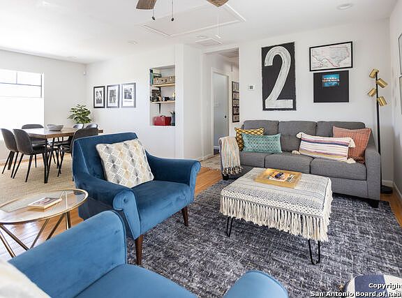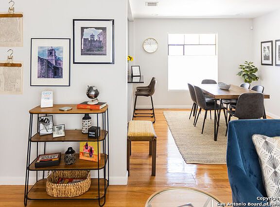Discover a fully furnished, all-bills-paid gem in historic Alta Vista. Thoughtfully designed and updated duplex with vintage charm and a modern flair. This upstairs unit boasts 1096 sq. ft. with two bedrooms, a full bath, a sunlit living room, and an upgraded kitchen with modern appliances and stylish finishes. It also includes a separate dining area, a covered deck, a shared in-unit laundry room, and a one-car garage. It is a short drive to downtown, the medical center, the Pearl District, the River Walk, and many more of San Antonio's iconic attractions.