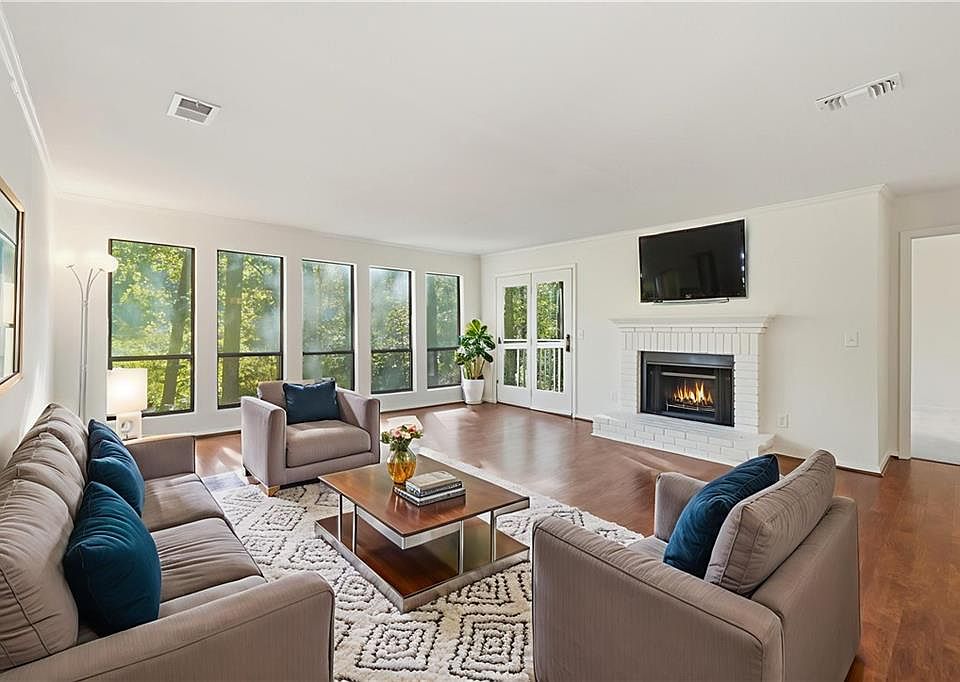 Two bed, 2 bath condo in the heart of Roswell! Located in the Roswell Springs neighborhood on Warm Springs Circle in beautiful Old Historic Roswell. Great location. Walk to Roswell Junction food hall, Azalea Park at the Chattahoochee River or take a scenic hike to Old Mill Park & Machine Shop where the Roswell Mill was located. Just a little over a mile to Old Historic Roswell, restaurants on Canton Street and conveniently located to the Riverwalk Trail system. No stairs, easy access to unit. This condo features an open floor plan with split bedrooms, LVP flooring, NEW carpet, freshly painted, gas starter fireplace, washer/dryer included and gorgeous windows throughout allowing plenty of natural light to fill your home. The kitchen features oak cabinets, stainless steel appliances and view to family room. The master bathroom stand-up shower has been upgraded. The view from the unit overlooks a wooded area and there is a covered deck off of the living room to relax, unwind and watch beautiful sunrises! Spend summers with friends and family at the community saltwater pool! The mailbox center and refuse area are near the 100 building by the front entrance, the recycling center is just after the 400 building, and the pool is located across from the 500 building in the rear of the complex. No assigned parking either. There are no rental restrictions with the exception that a 1-year lease min requirement (consequently, not FHA approved.) Neither Airbnb nor anything similar like it is permitted.