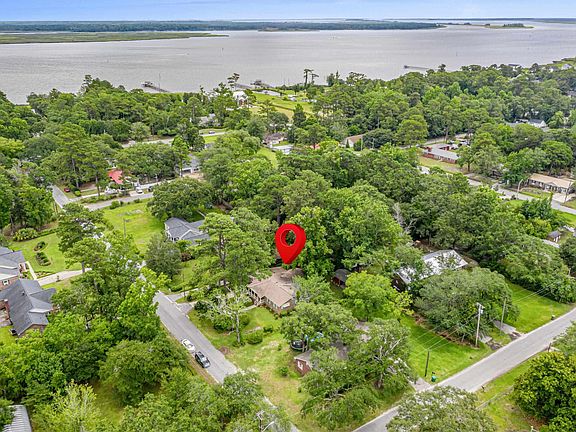 This spacious 4-bedroom, 2-bath ranch-style home is a hidden gem, much larger than it appears from the outside. The all-brick exterior exudes classic charm, and the inviting front porch sets the stage for welcoming guests. Inside, the formal living room boasts beautiful hardwood flooring, while the cozy family room/den features a gas fireplace. The kitchen offers an abundance of cabinets and counter space, and the formal dining room is enhanced by a built-in corner cabinet. Both bathrooms are updated, one features a full tile walk in shower and the other has a new tub/shower combo. At the rear of the home, the Carolina room is a standout feature, with sliding/screened doors that let in fresh air, a vaulted ceiling, and a ceiling fan, making it a perfect spot for relaxation. Just outside of this room is a brick patio. The large detached storage building and fenced rear yard offer ample storage and privacy. Located in an X zone, this home does not require flood insurance. Recent updates include some new landscaping, a new roof and gas logs in 2020, a new range in 2020, and a new dishwasher in 2022. Fresh paint throughout gives the home a bright, clean feel. The home is equipped with 200 amp electrical service and newly installed distribution panels, ensuring reliable and efficient power.