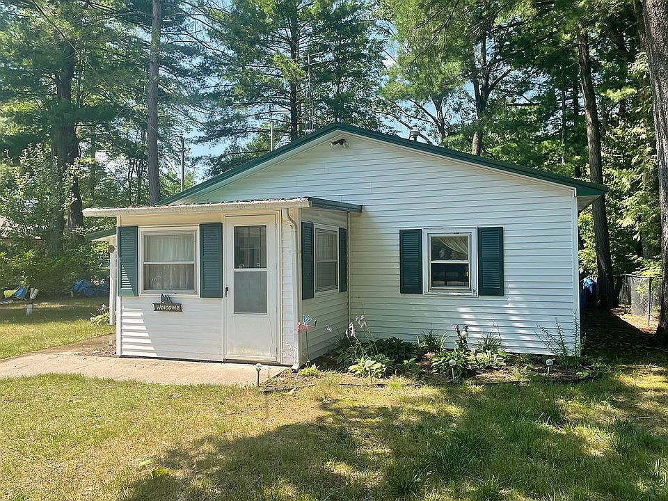 76' of waterfront property on Wixom Lake in Beaverton, MI. Just over 800 sq ft home. 2 bedroom, 1 bathroom home partially furnished. All appliances stay. Two red cedar tables and large 24 x 25 covered deck with fireplace over looking lake. Newer sea wall, retaining wall and metal roof. 2 car detached garage.