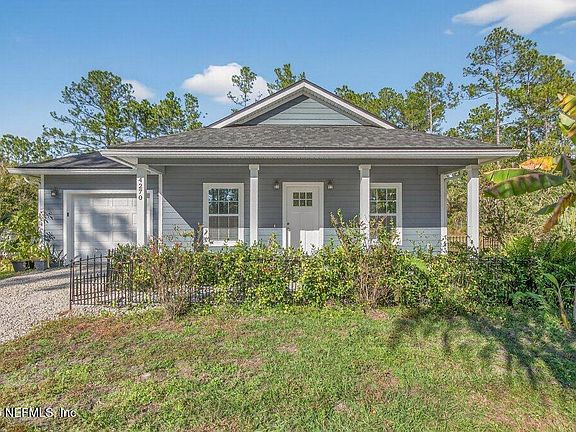 Beautiful almost new home in Fast Growing Area in St Johns County. Enjoy this 3 bedroom 2 bath with a one car garage and all on just shy of an acre of beautiful land in Southern St Johns County. This home boasts an open floor plan with 9 ft ceilings, wood self closing cabinets, granite tops in baths and kitchen, stainless appliances, and back patio. Seller has added many features including: 2 large palm trees, beautiful landscaping and fruit trees, an additional access driveway and culvert, and a water softener. No HOA/CDD -so no rules allows you to have a future large shed for your RV or car work shop in addition to many possibilities and privacy of having a large lot.