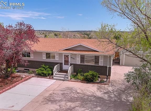 Hello Colorado home buyers! Have you ever driven by a home and said I would love to own that home, here is your chance. This home boasts amazing views of the city, mountains and an unobstructed view of the awe inspiring Pikes Peak. 5 bedrooms, 2 bathrooms, a huge fully finished 28' X 20' 2 car garage on a huge lot in the amazing Northridge neighborhood. Updated kitchen and bathrooms. All appliances included. Upgraded light fixtures. Big windows bring in tons of natural light. Champion venial windows on the main level. This home has been nicely maintained and has some really nice updates. It has new carpet as well as beautiful original hardwood floors on the main level. The backyard is fully fenced and features mature trees, a large custom stamped concrete 31' X 19' covered patio. New interior paint, new blinds on main level, New trim on main level, new back door and the garage was just recently painted on the exterior. 3 sheds on property and one is new. New water heater in 2020. Tons of space for RV parking. Fire hydrant at corner of the lot and street light on the other corner of the lot. I could go on and on, but how about I just say, Welcome Home!!