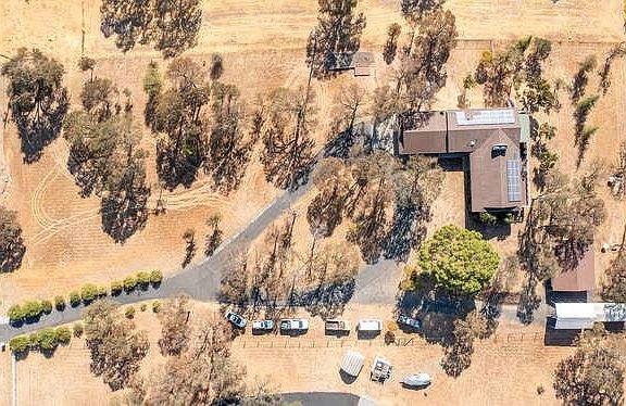 Rural & spacious living with all the comforts are awaiting you at this wonderfully maintained 2,187 Sq. Ft. home that sits on 2.1 Acres. A Paved circular drive leads to the 3-bedroom, 2-bath home with a large attached 2-car garage. Additionally, there is a separate room off the garage with a private entrance, offering versatile use. As you step inside, you'll be greeted by rural charm, featuring an atrium at the entry and fireplaces with stone hearths in both family & living rooms. Sliding glass doors provide picturesque views of the foothills. The interior has been freshly painted, and the bedrooms and living room boast brand new carpeting. The galley-style kitchen, updated approximately 5 years ago, offers new cabinetry, tile countertops, a solid-surface stovetop and dual ovens. The spacious primary bedroom opens to a bathroom equipped with an elevated jetted bathtub and built-in cabinetry for ample storage. The two additional bedrooms are generously sized and located on the opposite side of the house for added privacy. The property itself is a park-like setting, immaculately groomed and includes an RV parking pad with water & electrical hookups, horseshoe pits and a picnic table... everything you need for entertaining guests! There is also plenty of space for animals, a pool or a playground if desired. The home's roof is only one year old, and it features Tesla Solar panels backup power provided by Generac. Behind the house, a detached garage with workshop area offer endless possibilities, including potential as an ADU. Relax on the back deck while enjoying breathtaking western sunsets. One side of the deck includes electric retractable awnings for added comfort. If the home itself isn't enough, the location seals the deal! You're just minutes from Lake Tulloch, and HOA membership includes access to a boat launch and day-use area. Black Creek Park is also nearby, featuring a playground, ball fields, basketball courts, horseshoe pit & more. Calaveras County has so much to offer...come see it for yourself today!