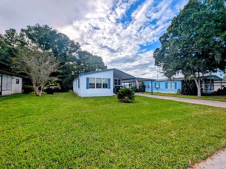 Owner Financing Available! This well maintained 2 bedroom 2 bath home sits on a quiet street in the 55+ community of Clover Leaf Farms. This beautiful home has been meticulously cared for, and the pride of ownership shows throughout the home! The spacious entry room at the front of the home leads you to the even more spacious living room with cathedral ceilings. Ample cabinet and pantry space in the kitchen. Large primary bedroom with en-suite bath and walk-in closet and sizable guest room as well. The home sits far back from the street, giving it a huge front yard and an extra-long driveway. No rear neighbors for this home, as it backs up to the neighboring farm. **Clover Leaf Farms is a 55+ community with a monthly lot fee of $856 that covers water, sewer, trash pickup 3 times a week, lawncare, and access to all of the amenities including indoor and outdoor heated pools, hot tub, sauna, fitness center, pickleball court, library, shuffleboard, and much more!