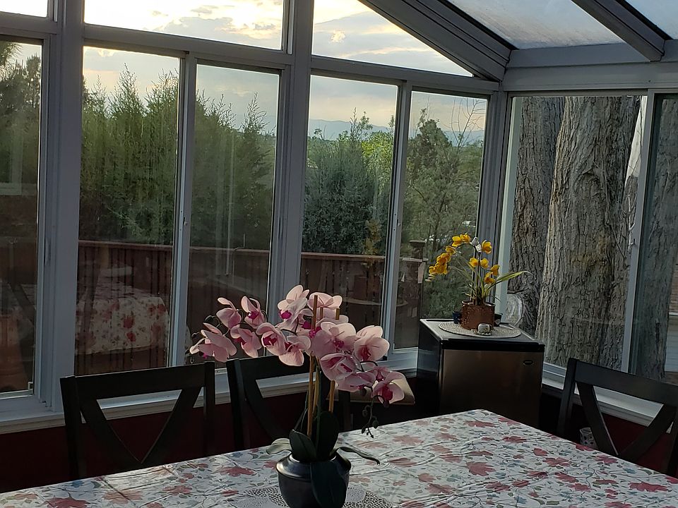 Completely updated. New kitchen with stainless appliances and quartz countertops. Sunroom with fantastic view of the Rockies. New roof in October or 2018, newer furnace and central air. Beautiful hardwood floors. Wet bar in basement. New hot water heater. Wood burning fire place. Includes a 6 person hot tub that has waterfall and stereo. Gutters never need cleaning, the have Leaf Guard attached.