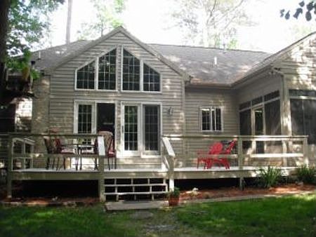 Large Phippin built custom home in mint condition on a 1+ acre wooded lot. Outside features are custom landscaping, sprinkler system with separate well, and programmed uplighting. Split floor plan features a large master bedroom suite, living room with pellet stove and window wall on one side. Large bedroom, full bath and family room with wet bar and gas fireplace on the other side. Perfect for an in-law suite. Corian countertops in kitchen and bathrooms. Family areas of home have recessed lighting. Custom-built French doors elegantly divide separate parts of the home. Two bedrooms with walk-in closets. Large rear deck and sunroom. Walk-in pantry and an oversized garage make this entire property appealing from the outside through the inside. Add a 1 year homeowner's warranty and you have perfection!