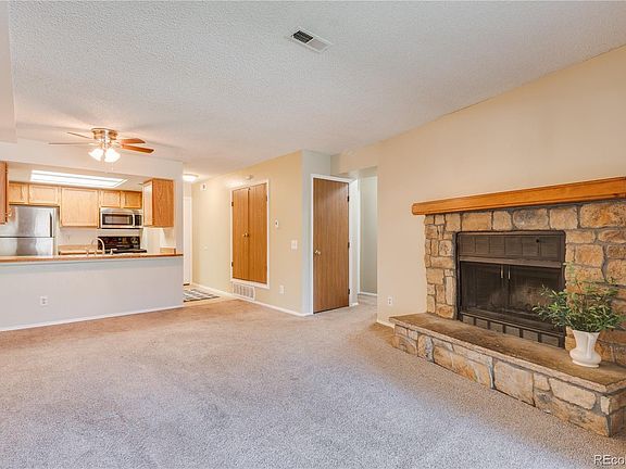 A great find for under 200k! This 2 bedroom and 1 & 1/4 bath condo is ready to move in to. Wood burning fireplace, covered patio, stainless steel appliances and washer and dryer in the unit. Close to shopping and across the street from Quincy Reservoir. This community has a pool and tennis courts. Easy parking, lots of storage with walk-in closets. Cherry Creek school district.