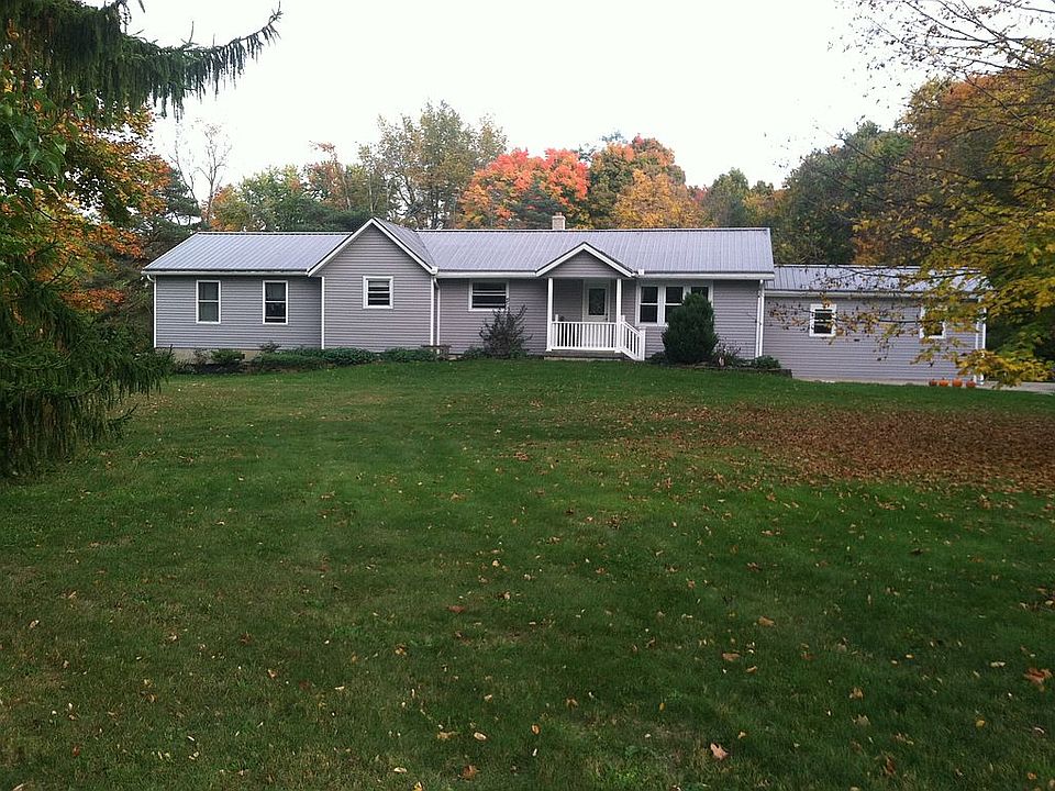 A ranch style home that sits on almost 2 acres in the Lexington School System. The land has mature trees with fruit trees that include pear, peach, cherry and apple. The home has 4 bedrooms, 2 with walk in closets, and 3 full bathrooms. The floor plan includes a sunroom built in 2002, a stained deck, finished basement, upstairs laundry, and an updated family room. The kitchen has a large pantry and a built in hutch. The laundry is upstairs with an additional hookup in the basement. The exterior was remodeled in 2012 to include new siding, windows, metal roof, new air conditioning, new furnace, and covered front porch. The heating system also includes a wood burner. The outbuildings allow for 3 more covered parking spaces. The larger outbuilding has air conditioning and a wood burner.