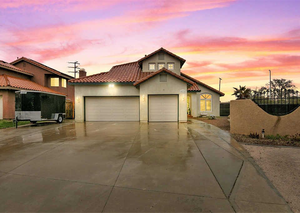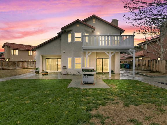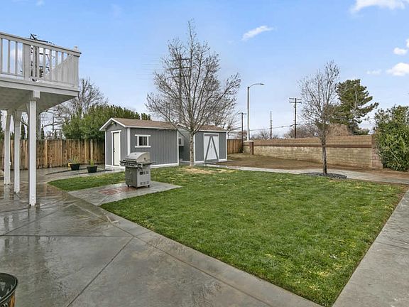 Stunning 2 Story Quartz Hill Home with Paved & Gated RV Access at end of Cul-De-Sac. Formal living & dining room, both light & bright with vaulted ceilings & sliding glass door off dining room to massive back yard. The kitchen is AMAZING! Marble counters, white cabinets, stainless steel appliances, farmhouse sink, custom back splash, double oven, breakfast bar as well as breakfast nook, open to the living room with fireplace & gorgeous wood look laminate flooring as well as 2nd sliding glass door to back yard. Downstairs bedroom as well as a full bathroom with granite counters. Upstairs primary bedroom has french doors to large balcony with great views. 2 large closets, attached bathroom with dual sink granite topped vanity, separate bathtub & shower. All 3 upstairs secondary bedrooms are spacious with ceiling fans, closets & share the guest bathroom with granite counters on vanity & a bathtub/shower combination. The back yard is huge!!! Large covered patio, spa, 2 sheds, RV access, additional patio and walkways, nice grass area, so much room for a pool, toys & more. Oversized driveway, attached, direct access 3 car garage with low maintenance hardscaped front yard.