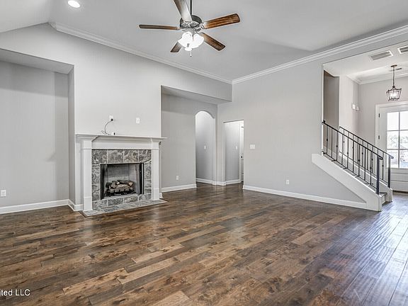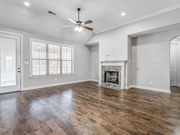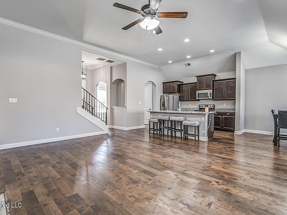 Great space in this Olive Branch home. Spacious backyard for entertaining. Lovely home with open concept family room. Hardwood floors, smooth ceilings and vaulted ceilings. Large island opens into the kitchen along with eat in area and family room. Granite in kitchen and all bathrooms. Nice size primary bedroom with 2 closets. Second bedroom downstairs with hall bathroom. Third bedroom upstairs with full bath along with bonus or 4th bedroom. The large backyard features a covered patio and additional patio area perfect for a fire pit.