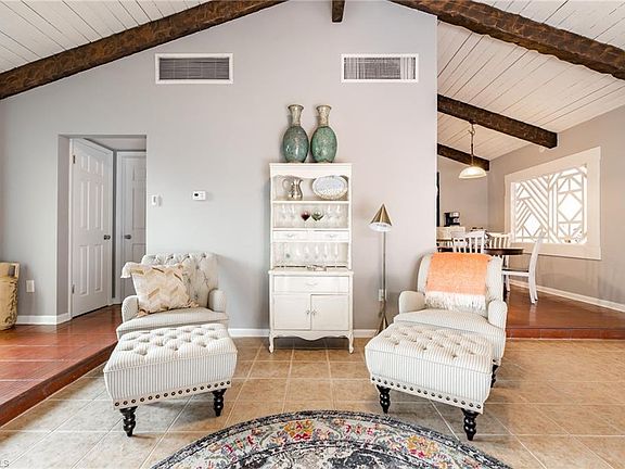 This charming villa is conveniently located along the McGregor corridor, with easy access to Fort Myers and Cape Coral. The adorable home has a cottage-like feel to it, while still boasting plenty of space for entertaining guests. The floor plan flows perfectly from the kitchen and front sitting area to the main living and dining areas. The exposed wood beams along the cathedral ceiling add another layer of uniqueness to the villa, not to mention the fireplace in the large living room. Unwind outdoors at night on the brick paver backyard patio or in the private courtyard. This home has so many wonderful features & upgrades -- don't miss out on your opportunity to call it home!