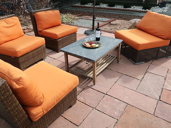 Available June 20-Aug 15 Fully Furnished! Utilities and high-speed internet included Live in Boulder, Colorado this summer! Don't miss this beautifully updated family home in North Boulder, close to parks, bike paths, and trails. We are offering our home fully furnished with utilities and high-speed internet included. We love our friendly neighborhood with its mature trees, shady streets, and peaking mountain views. Our home sits mid-block with a professionally landscaped, low maintenance front yard and large stone patio that is perfect for socially distanced entertaining or just relaxing. Inside, you will find a light and airy open concept main level with soaring 18-foot ceilings, exposed wood beams, oversized windows, and a large skylight. The well-stocked kitchen features custom slab-front Birch cabinets, under-cabinet lighting, gorgeous soapstone countertops, a professional Blue Star range, stainless steel appliances, a pantry, and large West-facing windows. The dining and living areas are soaked in natural light with Mid-Century Modern decor, stunning art, and a cozy fireplace. Large French doors lead from the living room onto the back deck, complete with grill and outdoor eating area. Upstairs you will find the master bedroom with vaulted ceiling, a private balcony, and a refinished en suite bath with skylight, custom vanity, double shower, built-out walk-in closet, and laundry chute. Two additional bedrooms with vaulted ceilings and closets, a bathroom, and a linen closet round out this floor. The lower levels of the house feature a large bonus room with an in-home movie theater/office furnished with a sofa bed for extra guests. The bonus room opens onto a lower deck and the backyard. Downstairs is a spacious, garden-level guest suite with large windows and ample natural light. The suite includes a treadmill, mounted TV, additional closets, and even a small art studio. Laundry and a third full bath are also located on the lower levels. You will find lovely hardwood floors and fresh paint throughout most of the house. Our home also features original art from notable photographers and designers, as well as pieces of antique furniture from the Mid-Century and Art Deco periods and vintage crystal doorknobs. The house also has a two-car garage with a workbench, bike stand, shelving, and plenty of bike hooks. Outside, the backyard is a kids' paradise with a wooden play cottage, trampoline, wooden play structure, fairy garden, and an enormous silver maple shade tree. This tree is home to a swing and the site of many backyard picnics. If you have a green thumb, the south side of the house has raised garden beds and a storage shed. In the spring, both the front and backyards come alive with flowering trees, bulbs, roses, lilies, and wildflowers. This certainly isn't the fanciest house in Boulder, but we love its natural light, many updates, and beautiful outdoor living areas. We hope you will too! **We had a full duct cleaning performed October 2019 and new carpet installed in the garden suite in Dec 2019 (not pictured)** Utilities and high-speed internet included Pets allowed with an additional deposit No smoking