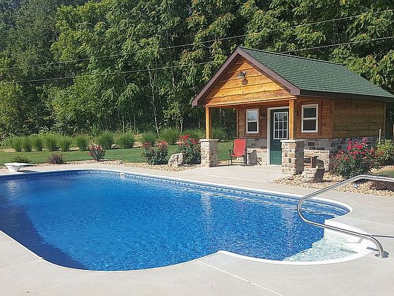 Beautiful 1.5 story home. Pool and custom outdoor kitchen. App. 1 acre pond. Awesome scenic driveway. Gas heat . New hot water heater. Hardwood floors. New carpet in bedrooms. Alderwood custom cabinets. Kitchen Aid appliances. Apron sink. 60X120 barn with 4 stalls and shop. Hot water in barn. Indoor riding or use for storage. Outdoor arena. Great fishing and decent deer hunting. Country/Rustic theme.
