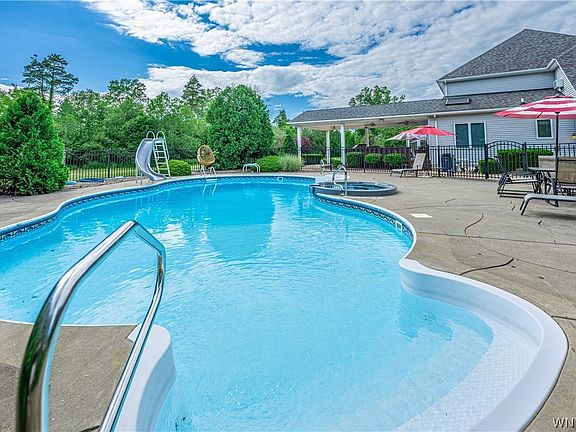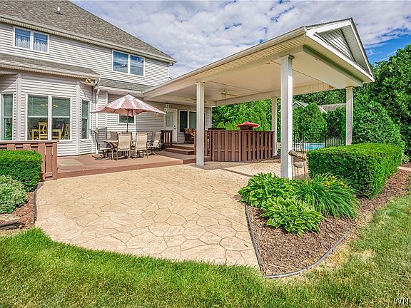 Pristine! Well maintained home with attention to detail. Wilson schools. Town of Cambria. 5-bedroom home w/3 bath. Situated in a park like setting on 3.9 acres. Custom built - open foyer, crown molding. Living room, dining room, kitchen with breakfast island and open dining. Family room with built-ins and fireplace. 1st floor laundry, 1st floor full bath. Private office with exterior access. Sunroom! 5 bedrooms. Double doors to owner's bedroom. Walk-in closet. Expansive ensuite. Bonus suite or 5th bedroom with 2 sets of closets. Skylight, independent heating and A/C. 3 car garage. Finished basement with wet bar and family room. Outside patio and deck! Gorgeous 20x40 inground majestic pool. Slide, diving board and attached spa. Lawn sprinkler system, alarm system, invisible pet fence. New septic 2022. Furnace & central air 2015, tankless HWT 2020. Finished ceiling lights 9-10 ft. tall! Generator. Truly a must see! Bonus room 31x17 is included in sq. footage. Sunroom 23x13 not included in sq. footage. 2022-07-21