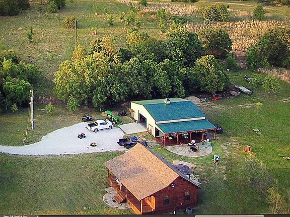 Vaulted ceiling with inlaid pine ceiling. Open kitchen, dining& living. 1200 sq ft pole barn / concrete floor electric garage door opener. Ceramic tile shower and entry. 8x40 front porch. Stained outdoor patio with rock walkway. New hot tub. Stained log siding. Steel gate entrance with 1200 ft graveled drive.
