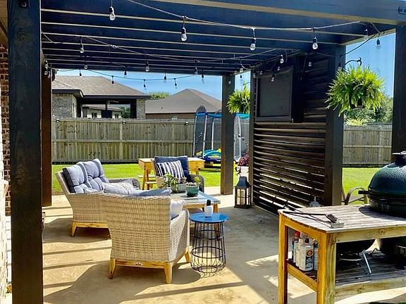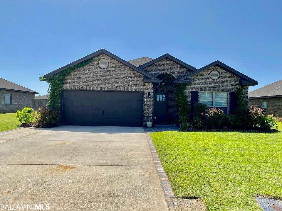 Immaculate, 3 bedroom/2 bathroom with a separate custom office, GOLD Fortified home located in the highly desirable Craft Farms North subdivision. This home has a split bedroom floor plan and open concept living and eat in kitchen area. BRAND NEW light gray, luxury vinyl wide plank flooring spans throughout the entire home. A new front door and gorgeous, custom board and batten entryway with a large updated light fixture greet you at the entrance. Double doors open into a spacious front office with a custom built in wooden desk spanning the length of the shiplap wall with floating shelves. Extra cabinetry and an updated light fixture make this space an ideal home office. The kitchen features granite countertops, custom backsplash, dimmable recessed lighting, a large stainless single basin sink, a touch-on/touch-off faucet, and all stainless-steel appliances. The living room and master bedroom have double tray ceilings with crown molding. There is another stunning board and batten wall in the master bedroom. The master en-suite bathroom features a double vanity with granite counter tops, garden tub, a separate walk-in shower, a private toilet room and a spacious linen closet. The master suite also features a custom built, walk-in closet made of solid wood throughout with tons of shelving, drawers, and hanging space, as well as another updated light fixture. The other two bedrooms are located on the opposite side of the home and are separated by their shared full bathroom. The spacious backyard features a concrete patio with a beautiful pergola and louvered wall complete with a covered TV mount, perfect for outdoor entertaining. Craft Farms North is within the Gulf Shores City School limit and conveniently located near the Foley Beach Express, shopping, restaurants, and only a few minutes away from the beach. This beautiful home is a MUST SEE!!