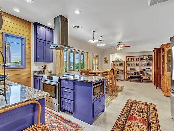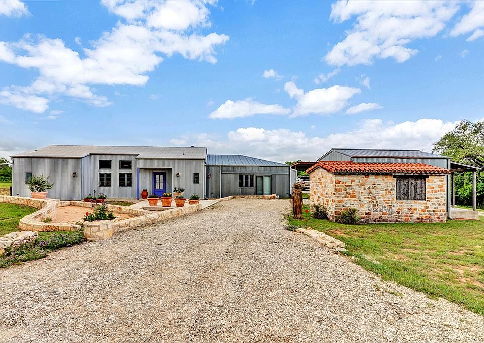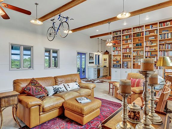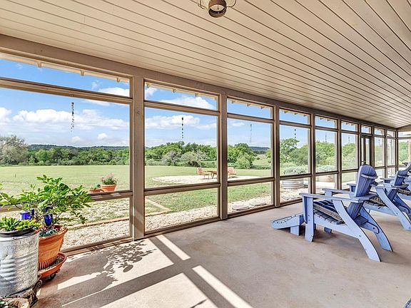MODERN PEDERNALES RIVER RETREAT w/525' of water frontage & 48' screened porch designed for year-round comfort with river views, 5.98 acres. Creative rural sanctuary with urban modernity OR peaceful live-work design studio OR spacious platform for larger riverside estate. Space is 1,830 sq ft custom-designed studio w/ versatile one open-concept bedroom plan,1-1/2 kitchens, 2 full baths (one w/walk-in shower, other w/deep soaking tub), concrete floors. Exposed-beam ceiling in main studio has 12-foot ceiling, 12-foot cabinet w/shelving & storage, lots of windows w/bright natural light.