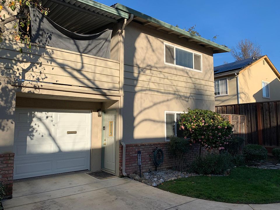 Available 2/4/2023 I am taking applications but I'm unable to remove that photo saying I'm not Sorry. 2 story townhome with attached 1 car garage, large fenced yard and side yard with gate, washer/dryer, air conditioning & wall heater. Large upstairs, covered deck/balcony, open on both ends. The garage has new automatic door & remote (most standard cars and small to midsize SUVs fit nicely. New washer/dryer large capacity. New flooring upstairs and new fireplace in master for heat when needed. Stainless Whirlpool kitchen suite of appliances (gas range, frig and dishwasher) new paint, new patio and deck furniture, landscaped. No smoking in the house or balcony area. Well behaved & quiet pets are a yes w/pet deposit. Ring security cameras provided for tenant use. Tenant is responsible for registering with Ring and using security video storage services for $30 a year. (Optional but recommended) This is an old and quirky place only 2 blocks to downtown Pleasanton or the Pleasanton Fairgrounds. Typically very quiet with long-term residents in all surrounding homes. Tenant must abide by basic home owner assoc guidelines of complex & a copy can be provided. Landlord & or tree company has to have access to back yard 1-2 times a year for tree/yard/sprinkler maintenance. Absolutely no barking doggies. Ultimately I'm only choosing someone who has submitted an application. I do check your references and background check. You will be responsible for a small amount of upkeep only in the back yard such as watering and occasional picking up leaves. Move in ready approx Feb 5/6/2023. Upon signing, First month's rent plus $3,000 deposit and pet deposit (if applicable) is due. I'll accept dogs of all sizes but they have to be incredibly well mannered and quiet. I can't have complaints from the home owners association. Landlord pays: monthly Home Association Dues and water/sewer. Tenant pays: Garbage, all other utilities. There will be an OPEN HOUSE WALK THROUGH by invite only. Open-house walk through by invite only. Please message me for details. I'll let applicants check the place out in the order I receive your application or request. Never come to the home uninvited There are tenants occupying the townhome now and they are absolutely not to be disturbed. Thank you