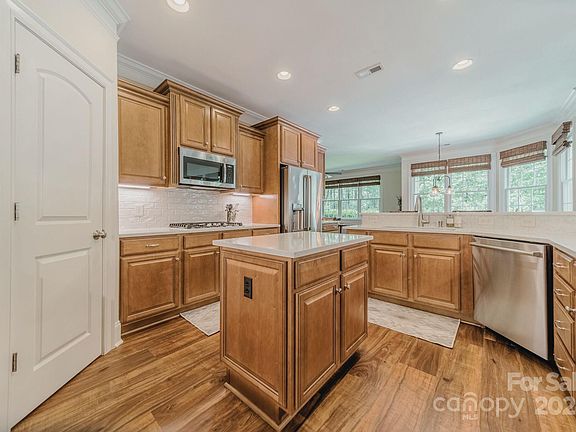 Welcome to your dream home! This custom-built beauty boasts high-quality updates and luxurious touches throughout like high-end luxury vinyl plank floors and stunning lighting fixtures. The gourmet kitchen is a chef’s delight, featuring new appliances, quartz countertops, and a stylish subway tile backsplash. The main level offers a spacious primary bedroom along with another guest bedroom. The lower level beckons with a recreational room complete with a billiard area and wet bar, perfect for entertaining friends and family. Step outside to your own private oasis with wooded backyard and common open space to the right of the house for ultimate privacy. Enjoy outdoor living with new Trex decking, a covered lower level patio, and a terrace featuring a tranquil waterfall feature by the fire pit. Conveniently located with easy access to Charlotte and the airport, this home offers the perfect blend of luxury and convenience.Don’t miss the opportunity to make this stunning property your own.